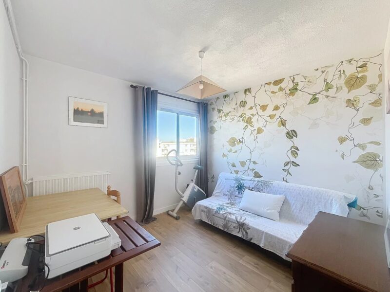Le double séjour, exposé plein Sud, s’ouvre sur deux balcons offrant une vue dégagée sur les Pyrénées. L’appartement est en bon état, mais quelques travaux de rafraîchissement (électricité notamment) seront à prévoir afin de le mettre au goût du jour. Un parking public gratuit, situé au pied de l’immeuble, permet de stationner facilement au quotidien.